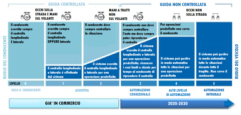 Veicoli in grado di compiere in modo autonomo alcune operazioni (livelli 3 e 4) giungeranno sul mercato europeo entro poco tempo: auto e autocarri capaci di gestire situazioni specifiche in autostrada, vetture che si parcheggiano da sole e simili. Ecco che a questo punto diventa necessario distinguere le responsabilità del guidatore dalle responsabilità del veicolo stesso in caso di incidente. In Lussemburgo ad esempio si sta già sperimentando la navetta che si muoverà autonomamente tra la stazione ferroviaria e la zona industriale di Contern e le auto capaci di guidarsi da sé ovunque e in ogni condizione di traffico (livello 5) dovrebbero essere disponibili entro il 2030.